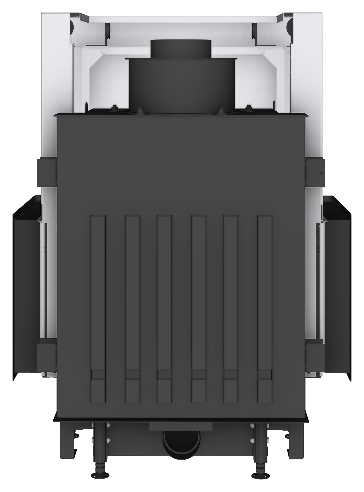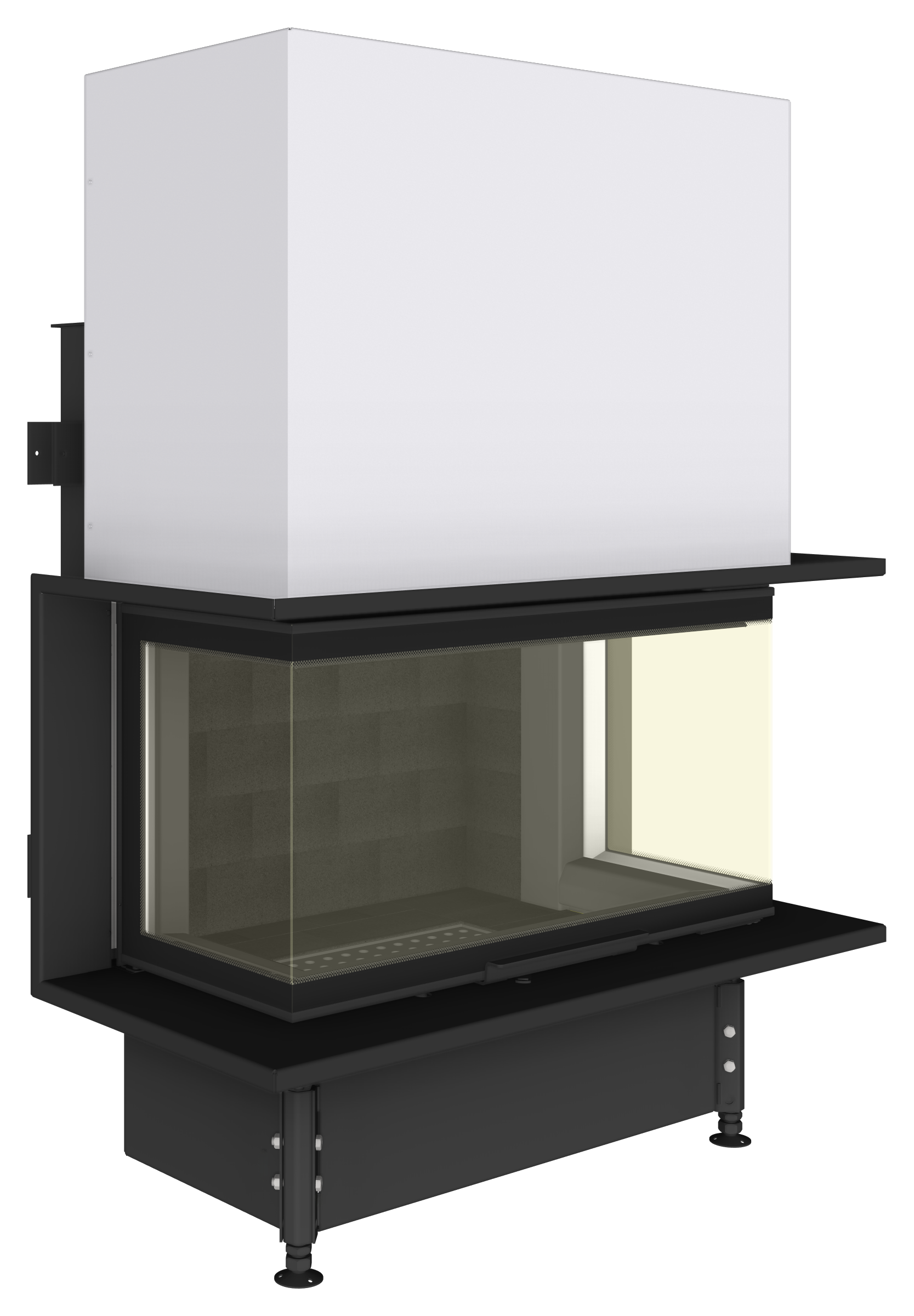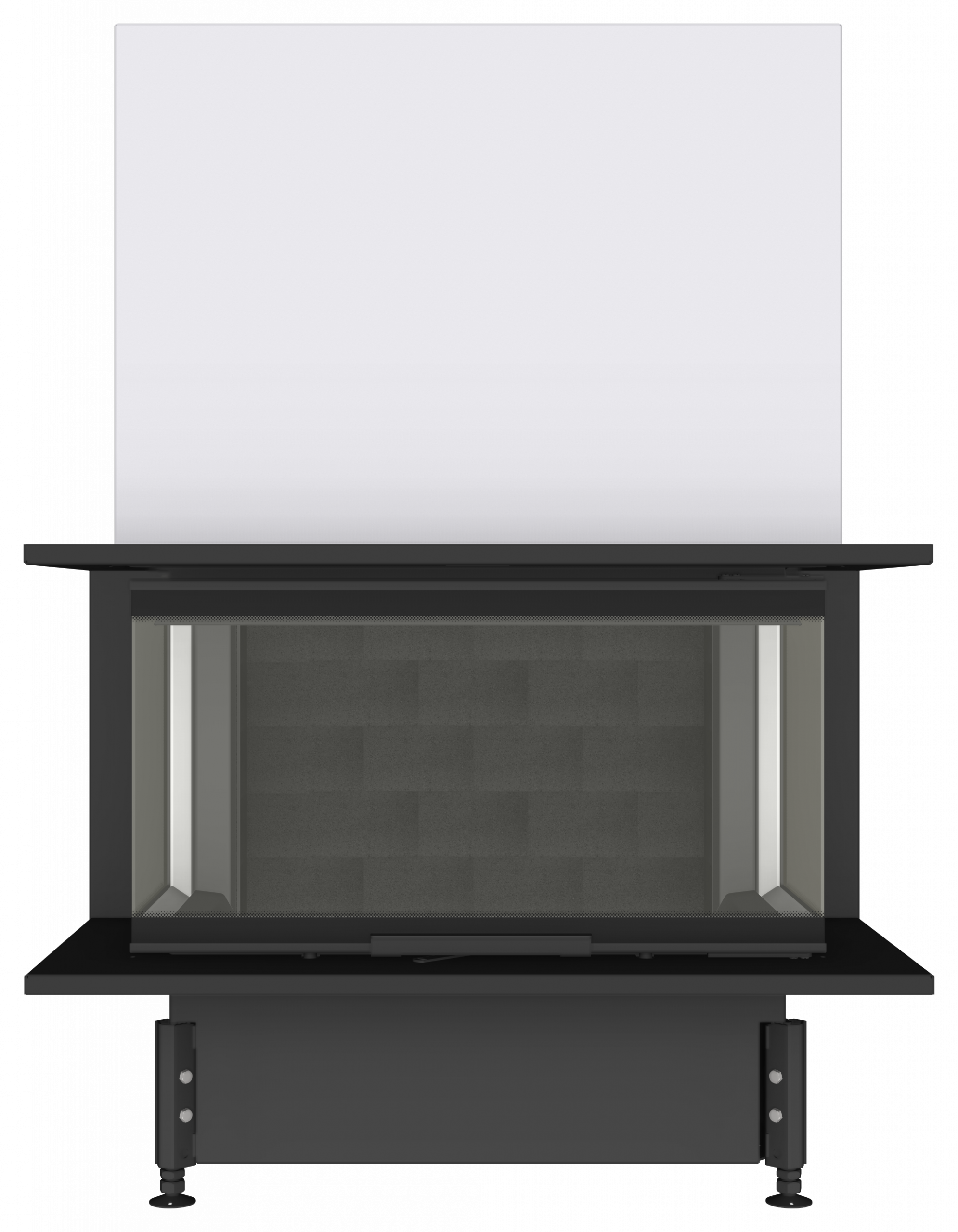 Insert à bois personnalisable en acier inoxydable avec porte relevable pour le chargement du bois ainsi qu’à ouverture latérale pour le nettoyage de la vitre. Vision du feu sur 3 côtés à 180°. La chambre de combustion du foyer est entourée de briques réfractaire noires, jointures de brique lisse et permettant une accumulation de la chaleur pour la restituer en fin de combustion. Arrivée d’air de combustion de l’extérieur de série. Vitre sérigraphiée pour un style contemporain. Cadre de finition décorative compris dans le produit. Poignée de porte en inox peint en noire. Peinture écologique. Ce foyer permet d’utiliser des bûches de 50 cm de long.