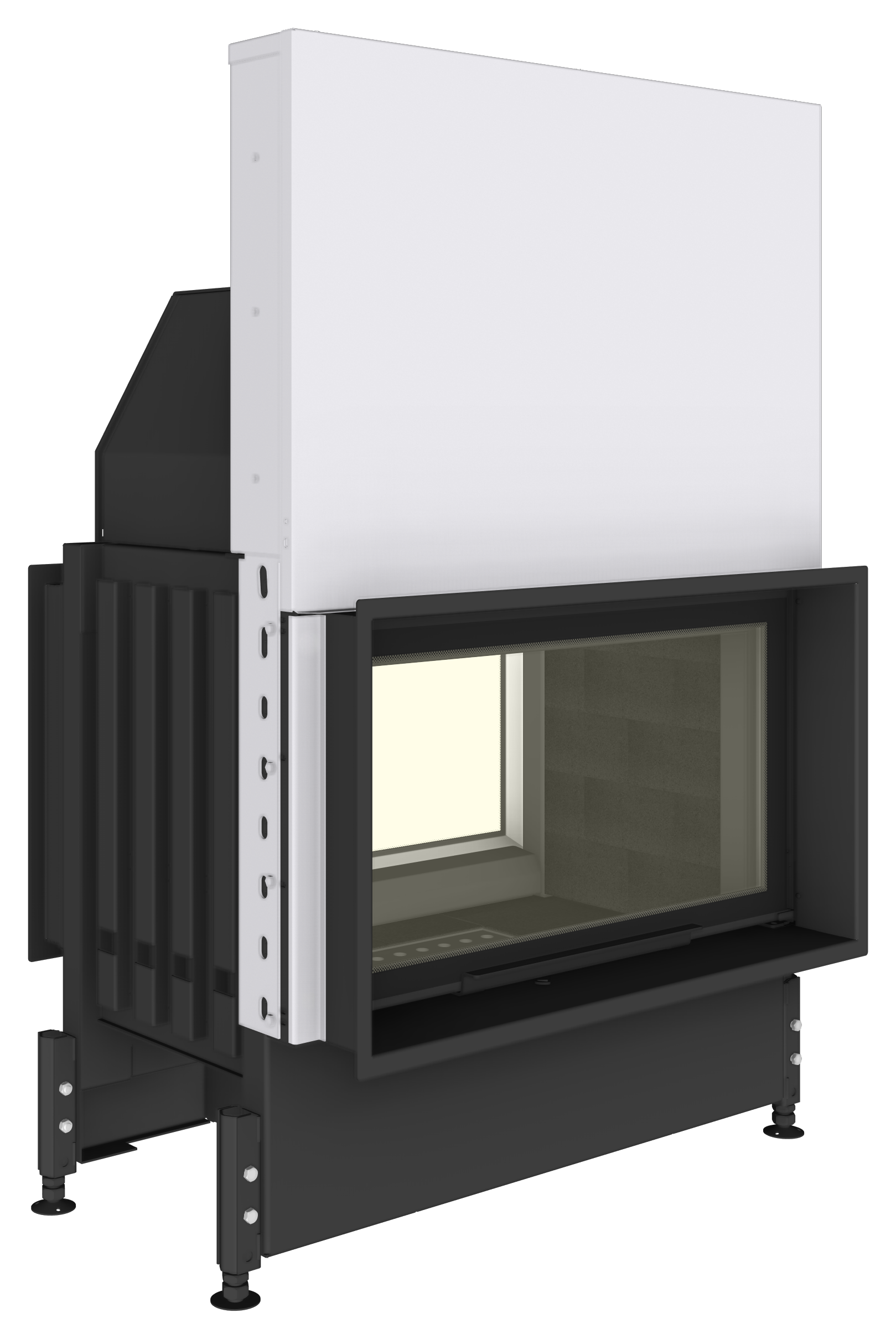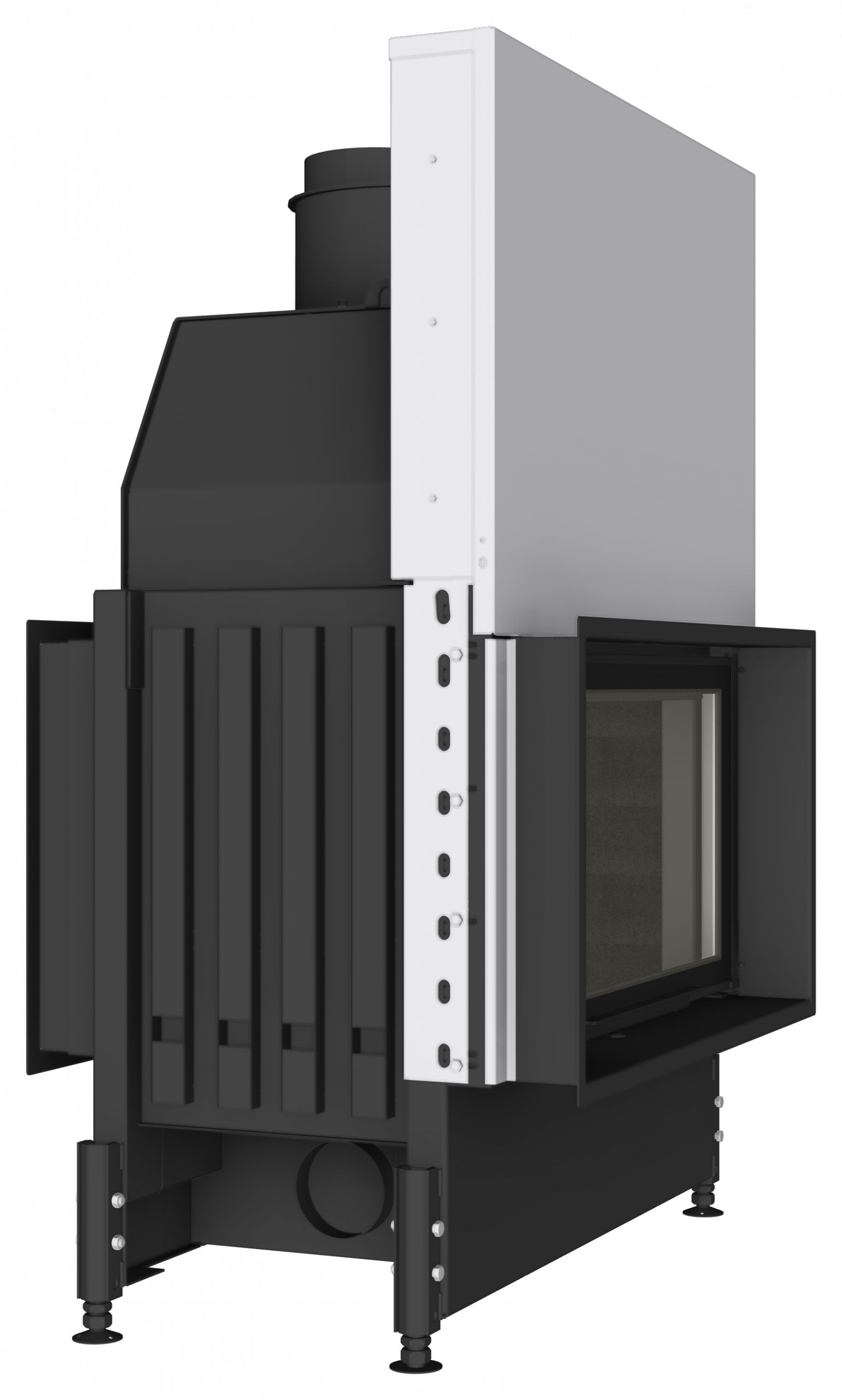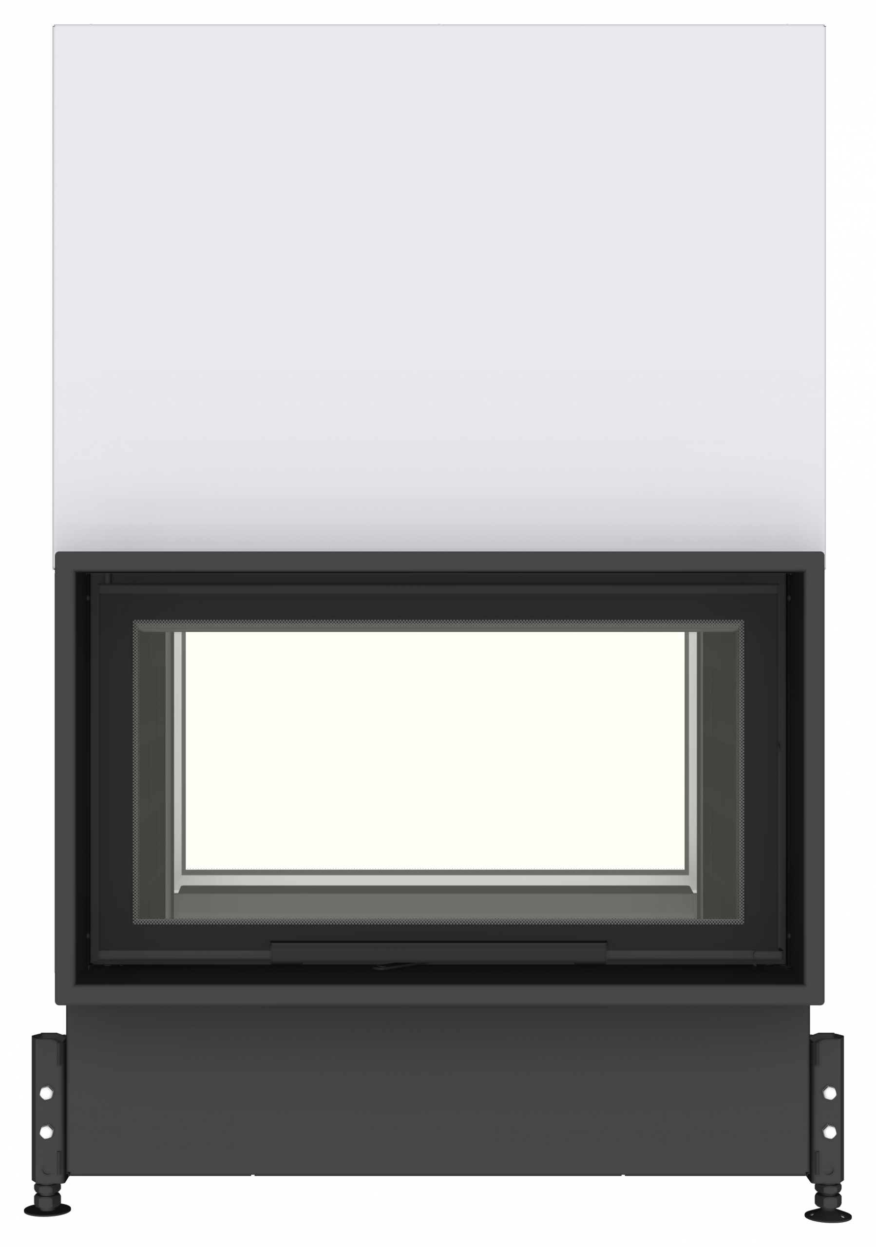 Dans la gamme d’inserts double-face, il est possible sur demande de commander d’autres tailles allant de 50 cm à 130 cm de large. Ces inserts à porte relevable sont tous disponibles également en version ouverture latérale (STABIL O 73) et toujours avec le même degré de personnalisation. Enfin, chaque insert double face possède son équivalent dans d’autres formes comme les foyers en épi qui eux aussi permettent de séparer une pièce en 2 parties. Exemple d’insert en épi (STABIL O/2R90 90).